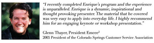 Whether you are a company or group seeking inspiration, motivation, insight, healing or performance excellence, Enrique Montiel brings a dynamic and impactful presentation to help your group reach its true potential. Enrique has provided professional presentations for over a decade to audiences from all walks of life in both in the public and private sectors. Invite Enrique to join you at your next event.